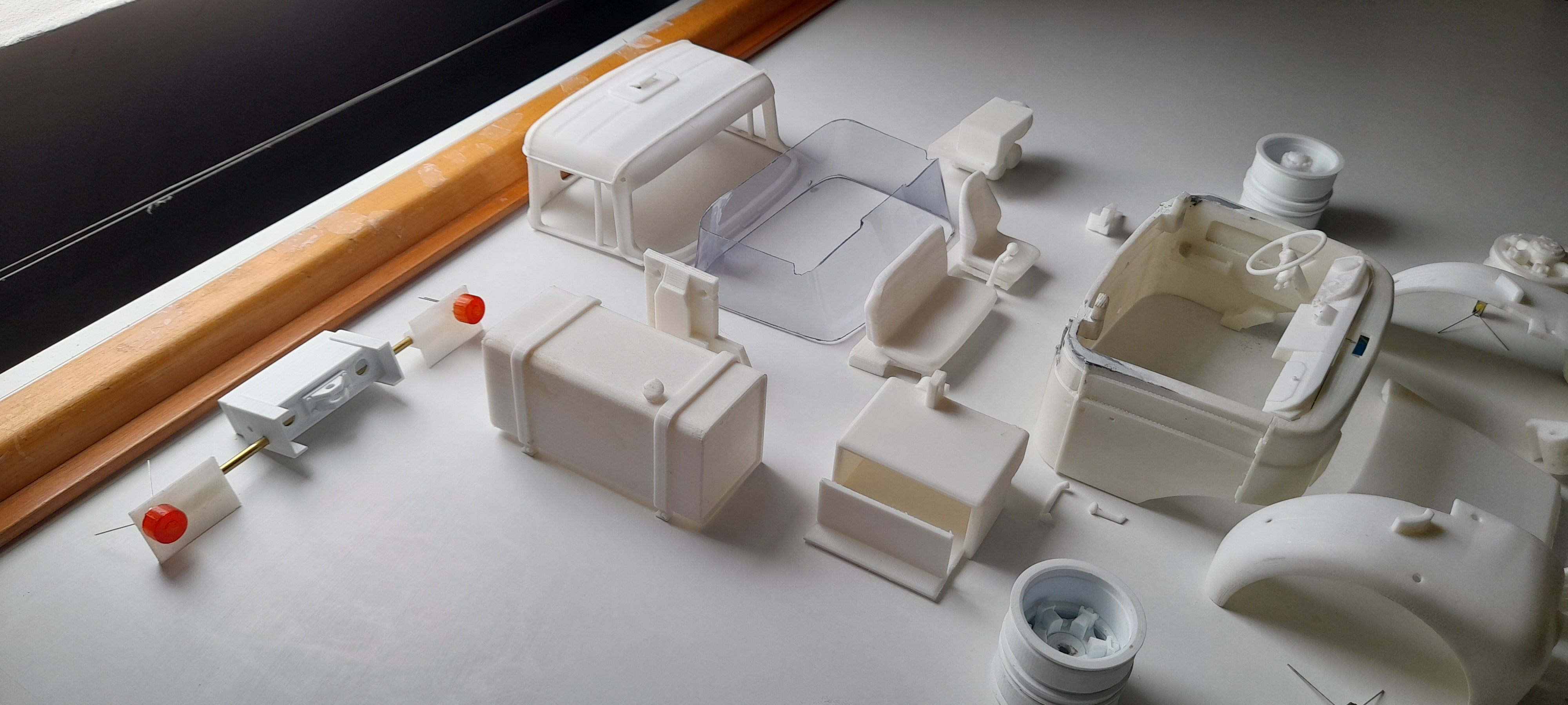 Je pars de plans constructeurs ou de "blueprints" tirés de catalogues officiels des marques pour être au plus juste en termes de dimensions et de proportions. Aucun de mes fichiers ne provient de sites 3D que tout le monde connait ou de copies de fichiers 3D (low poly) « réalisés avec très peu de polygones de numérisation pour ne pas être trop gourmands en mémoire dans le jeu », récupérés sur "EuroTruckSimulator" et modifiés pour en faire des fichiers imprimables.